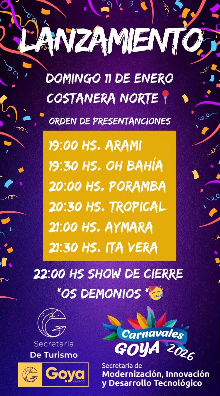 Este domingo 11 de enero, desde las 19, finalmente se hará la presentación de los carnavales en la ciudad de Goya, después de tres suspensiones consecutivas por mal tiempo.