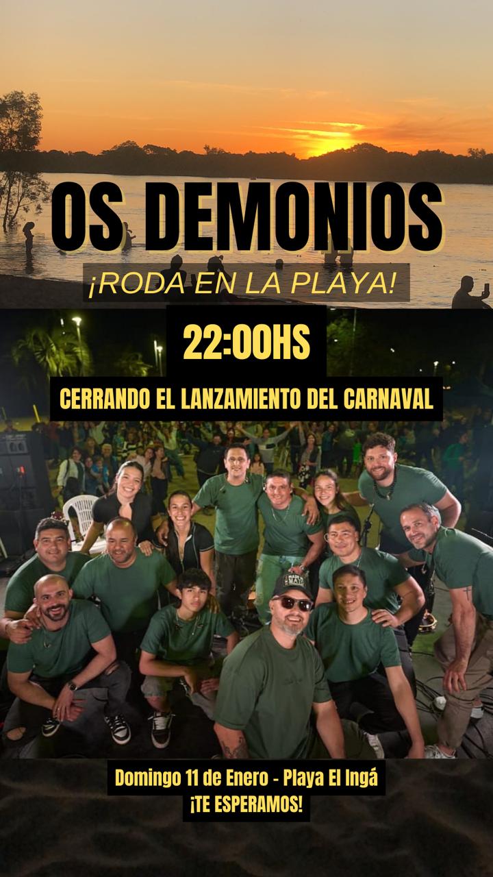 La particularidad de la velada a la vera del riacho, además de conocer fechas y detalles de las lunas carnestolendas, es que el cierre estará a cargo de la Banda Os Demonios con su Roda en la playa.