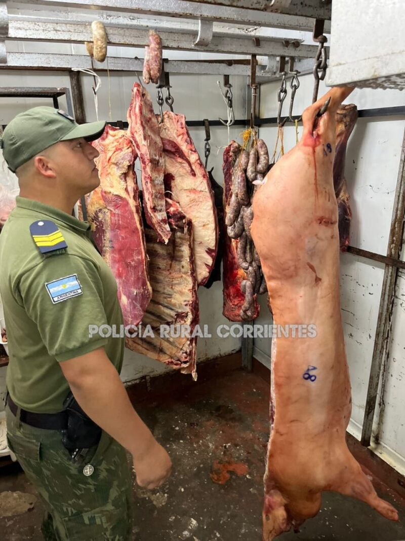 El propietario realizó la entrega voluntaria de la mercadería, procediéndose al secuestro de costillares, vacío, aguja, menudencias, cortes de cerdo, osobuco, pollo y chorizos, que en total superaban la tonelada y media.