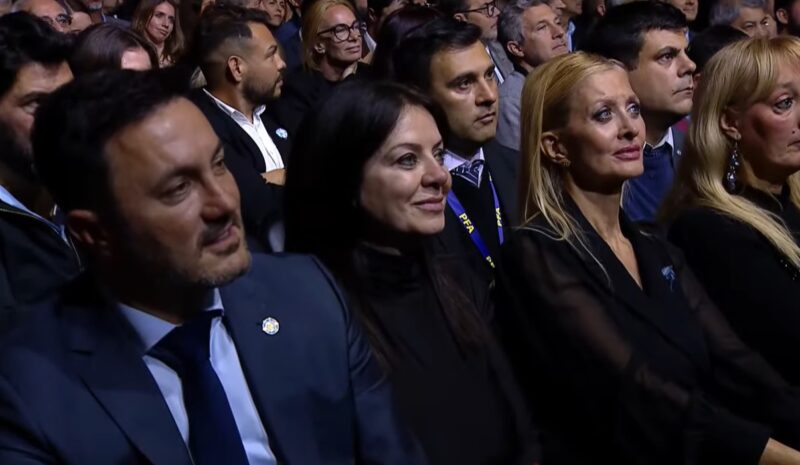 Comenzó su discurso con agradecimiento a sus ministros y a los presentes en el Luna Park. Karina “El Jefe”, Victoria Villarruel, Martín Menem, Patricia Bullrich, Luis Caputo, Daniel Scioli, Petri, Pettovello, hasta “Yuyito” González se ubicó en la primera fila, frente al escenario. Ninguno se quiso perder el show del Presidente.