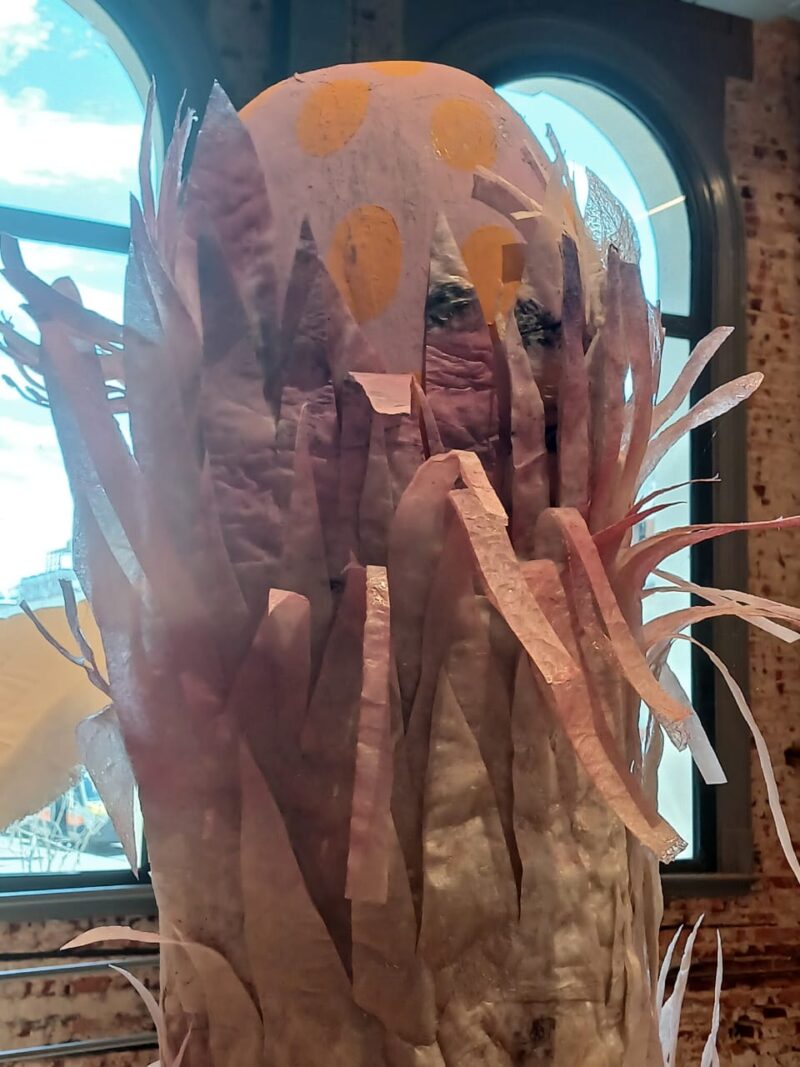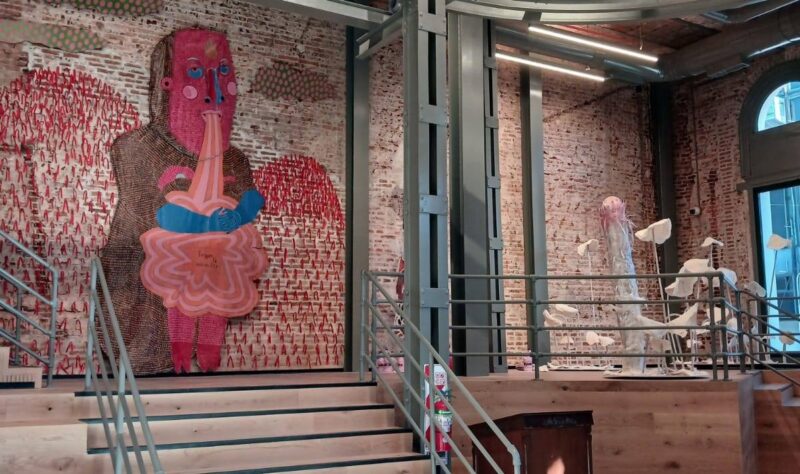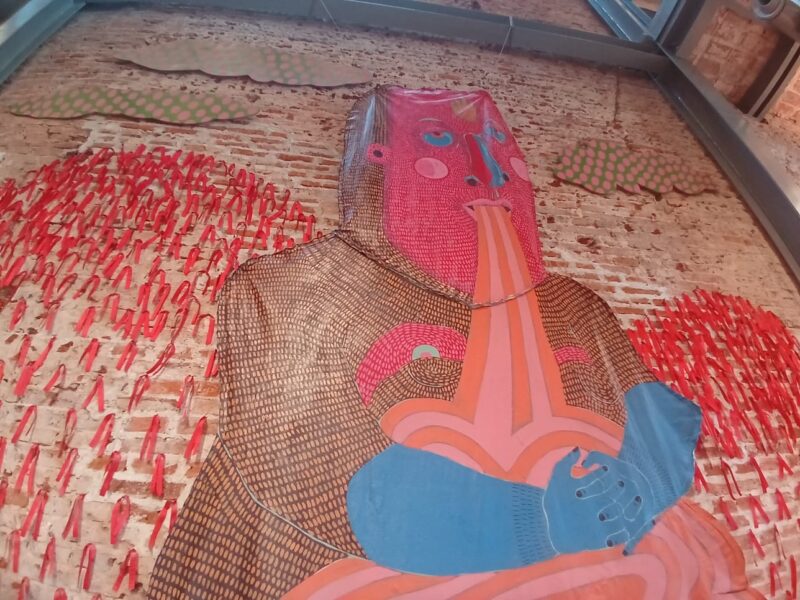 Gustavo, un placer, artista visual, parte de la muestra fundacional, de la inaugural del Museo de Arte Contemporáneo de Corrientes, con una obra muy particular, de grandes dimensiones y que es objeto de atracción permanente del público.