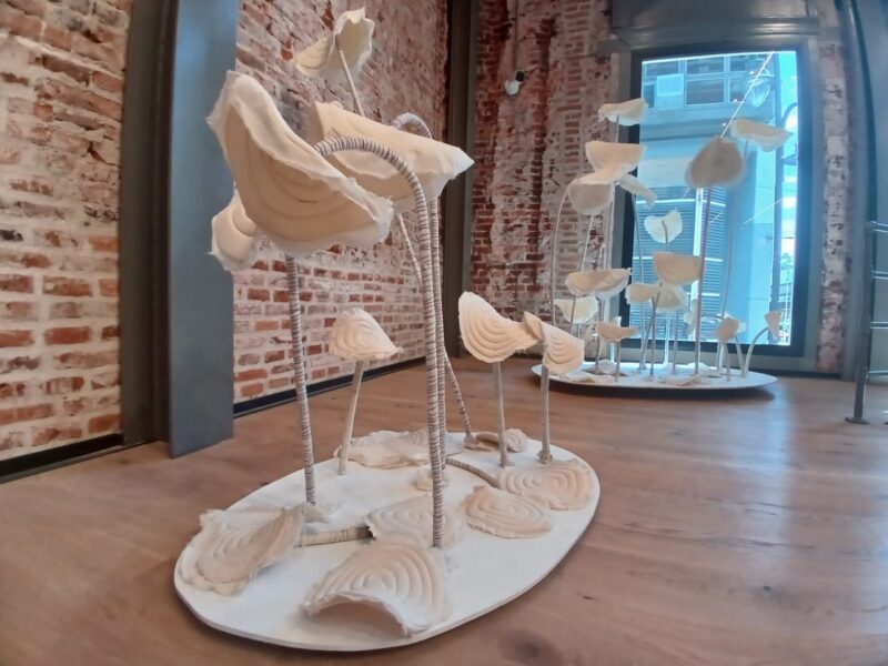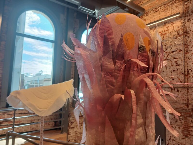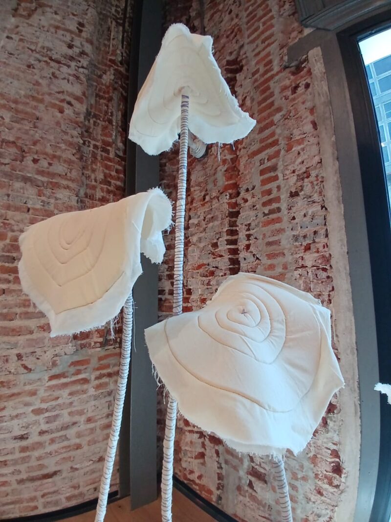 -Sí, creo que es como una pequeña síntesis de todo lo que vengo trabajando en la obra que está actualmente en el museo. Toca el tema de la naturaleza, los formatos que suelo utilizar para abordar esas temáticas; bueno, el textil, la madera, y en esta producción entró como el plástico, que yo también ya venía trabajando como en otras producciones, y me interesaba porque prácticamente era como lo veía así: era como una síntesis de todo eso que vengo desarrollando ya hace un tiempo. Y la religiosidad es un hilo conductor en toda mi producción, me interesa mucho.