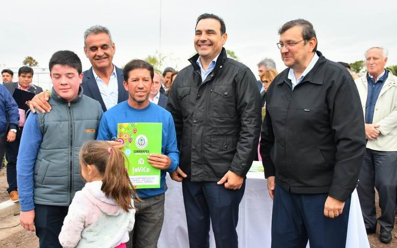 En horas de la siesta, la comitiva del Gobierno llegó a Lavalle, donde entregó 10 viviendas del programa provincial Oñondivé en el barrio Arturo Illia. Valdés expresó su satisfacción por la implementación eficiente de la política, elaborada en conjunto con Invico (Instituto de Vivienda de Corrientes) y los intendentes.