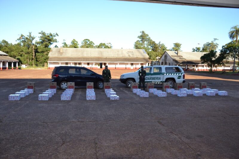 Un automóvil que evadió un control de Gendarmería Nacional del Escuadrón 57 Santo Tomé, en el kilómetro 17, de la Ruta Provincial Nº 36, fue hallado con casi 15 mil paquetes de cigarrillos de contrabando. Además, pesaba sobre el rodado un pedido de secuestro por robo.