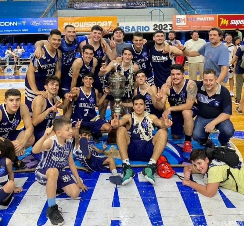 Hércules, la tradicional entidad del barrio Libertad volvió a «saborear las mieles de la gloria», al consagrarse bicampeón del torneo Oficial 2023 de la Asociación de Básquetbol de la Ciudad de Corrientes (Abcc) en Primera División, tras doblegar a Córdoba, 55 a 50 y desatar el festejo de su fiel hinchada que estuvo presente en el José Jorge Contte.