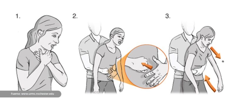 Importante: si la persona está inconsciente, se debe llamar a emergencias y realizar compresiones torácicas en lugar de compresiones abdominales.