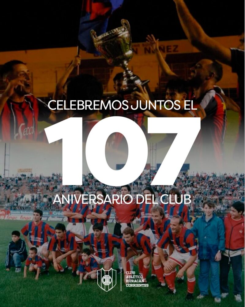 Fundado el 28 de mayo de 1918, el histórico Club Atlético Huracán Corrientes cumple hoy 107 años de vida institucional. El festejo a lo grande será este viernes 30 de mayo a partir de las 18.30 en las instalaciones del barrio Berón de Astrada. Las actividades previstas incluyen juegos, sorteos, peloteros, metegol, feria de artesanos, comidas típicas, el tradicional chocolate caliente con facturas, ballet y música en vivo.