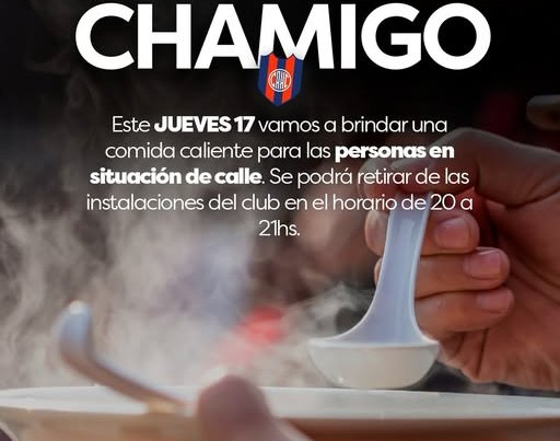 Con el lema «Volvemos a abrigarte chamigo», el club brindará nuevamente una comida caliente a las personas en situación de vulnerabilidad este jueves 17, el alimento preparado por los directivos de la entidad «azulgana» se podrá retirar de nuestras instalaciones en el horario de 20 hs a 20:30 hs.