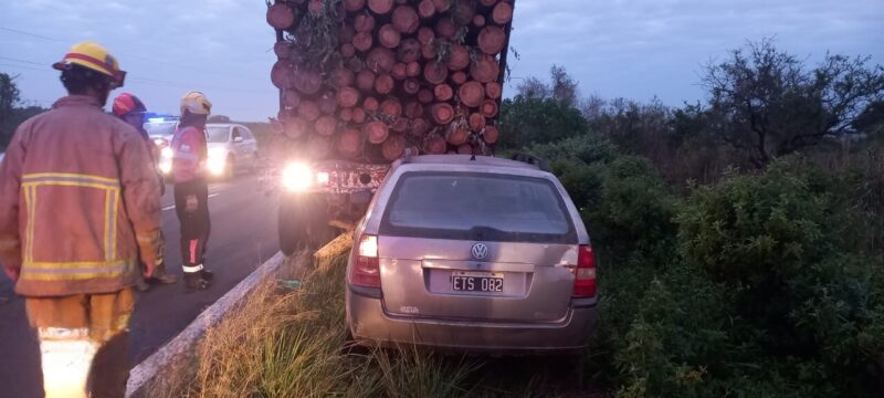 Un siniestro vial que por poco termina en tragedia sucedió este lunes 10, sobre la Ruta Nacional 118 que comunica a la ciudad de Saladas con Santa Rosa. Un automóvil se estrelló contra la parte trasera de un camión que transportaba rollizos de madera.