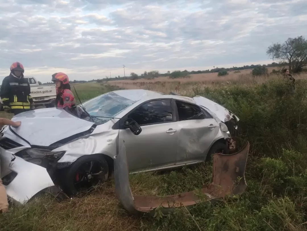 Bomberos Voluntarios de Saladas acudieron al lugar y encontraron al vehículo, un Toyota Corolla gris, a varios metros de la calzada con las ruedas hacia arriba, tras haber despistado y volcado. El conductor, fue rescatado con vida y trasladado de urgencia al Hospital María Auxiliadora de Saladas.