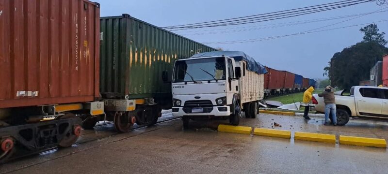 Un impactante siniestro, que pudo ser una tragedia, pero no pasó de un gran susto, se registró en Mocoretá el sábado último. Un tren de carga embistió a un camión distribuidor de bebidas, en la avenida de acceso a la localidad, en el cruce de vías de Pasaje Rivadavia.