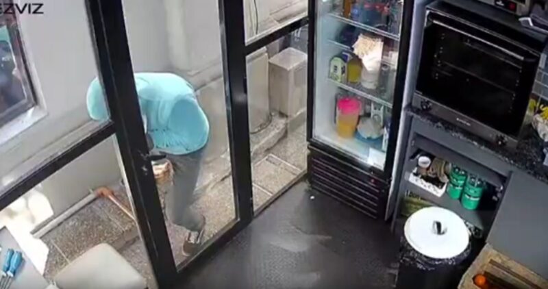 Una vez dentro, el sujeto se dirige directamente detrás del mostrador, abre la caja registradora y sustrae todo el efectivo disponible. Tras guardar el dinero, sale rápidamente del local por el mismo hueco que había creado en la puerta y huye de la escena. Todo el operativo le llevó poco más de un minuto.