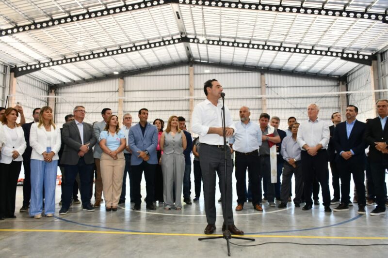 Tras el corte de cintas de las obras viales, la comitiva se trasladó al barrio Santa Lucía para inaugurar el Polideportivo Municipal, un espacio cubierto diseñado para el encuentro y la práctica deportiva de toda la comunidad.