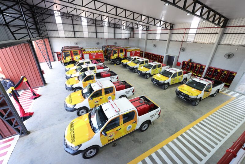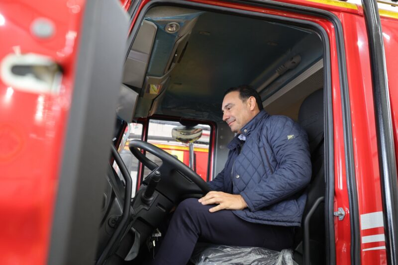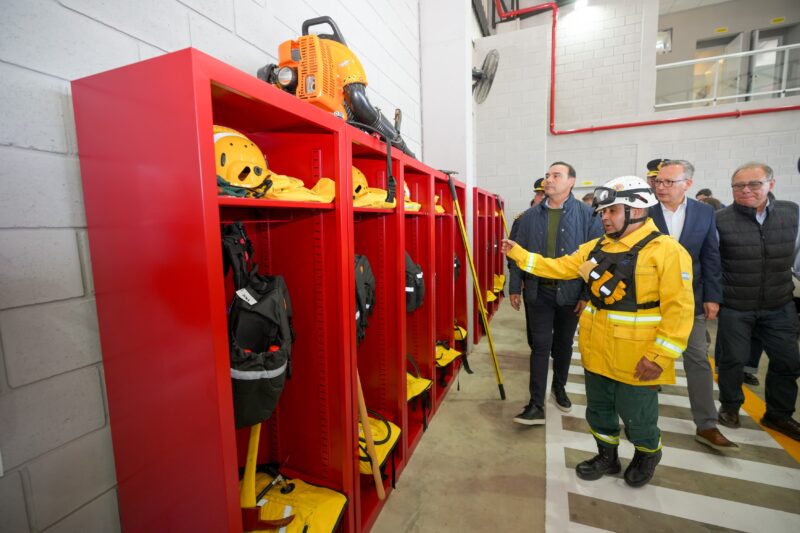 En cuanto al equipamiento rodante, el cuartel está dotado de un parque vehicular de última generación, incluyendo 10 camionetas de ataque rápido y 5 autobombas forestales. Entre ellas, destacan las autobombas marca IVECO 4×4 integral todoterreno y camionetas Toyota 4×4 todoterreno con kit de ataque rápido, capacidad de agua de 500 litros y dos salidas de altura y alta presión. El Gobernador resaltó que algunas de estas autobombas fueron construidas en Europa con la mejor tecnología, con un valor cercano a los 500 mil dólares cada una.