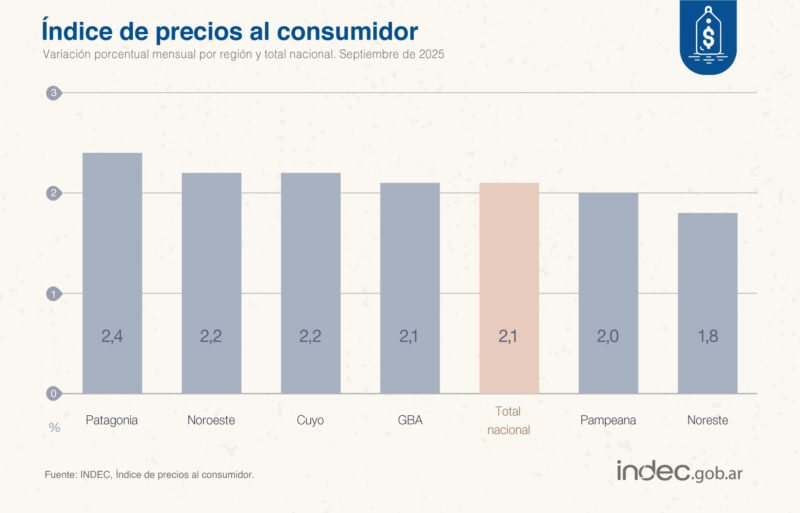 A escala nacional, el IPC fue del 2,1 por ciento en septiembre, acumulando una suba del 22 en lo que va de 2025 y del 31,8 en los últimos 12 meses.