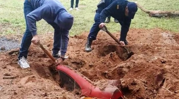Las investigaciones revelaron que el denunciante, junto a su esposa y un amigo, habían planificado una falsa denuncia. El vehículo, lejos de haber sido robado, había sido enterrado en diferentes lugares para simular el hecho. Los tres involucrados fueron demorados por la Justicia.