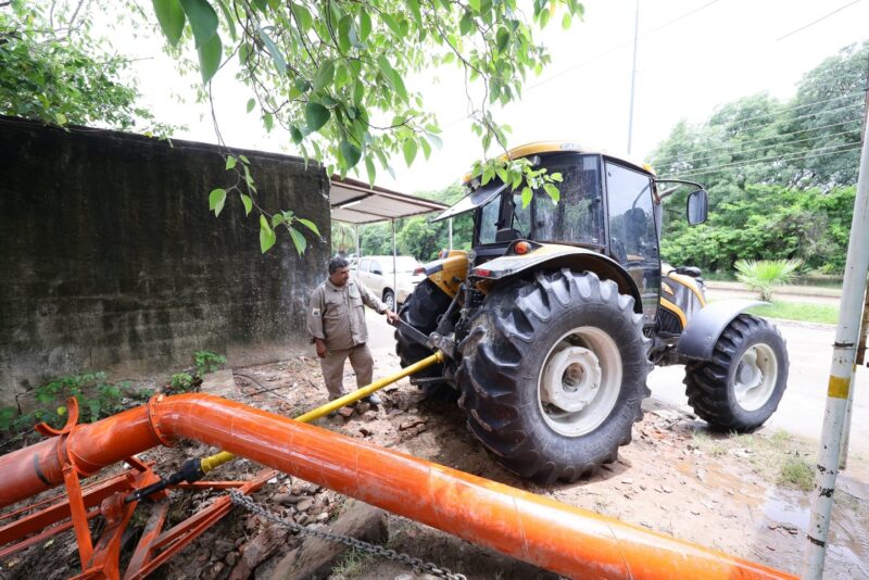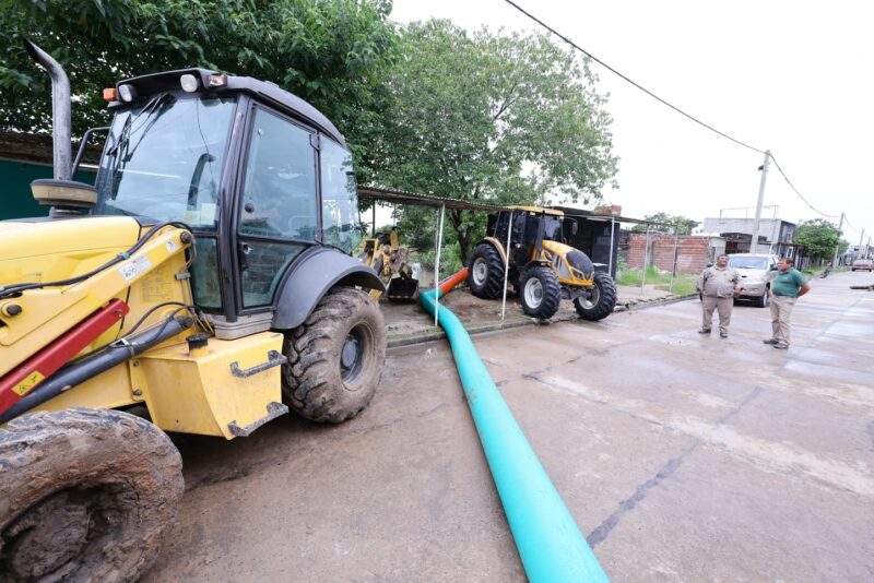 En el barrio La Olla, de la ciudad de Corrientes, se ejecutan tareas de desagote mediante el uso de tractores y bombas para evacuar el agua acumulada y aliviar la situación de las familias de la zona y sectores aledaños.