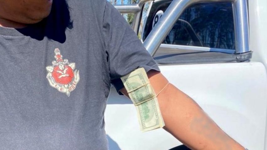 En principio, los uniformados detectaron que el mismo portaba un arma cargada con 12 municiones, y tras realizar una requisa más minuciosa, descubrieron que escondía billetes de moneda extranjera sujetos con bandas elásticas en sus brazos.