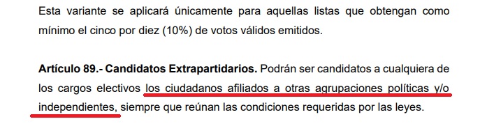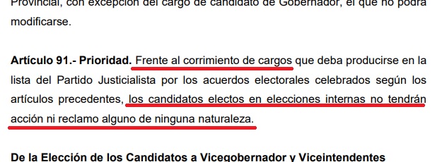 Más claro echale agua. Hay un artículo que contempla la posibilidad de que un no peronista sea el candidato a Gobernador. Va más lejos. Claramente determina que un afiliado a otro partido o un independiente pueda serlo. Ello explica el «rum-rum» de los últimos meses.