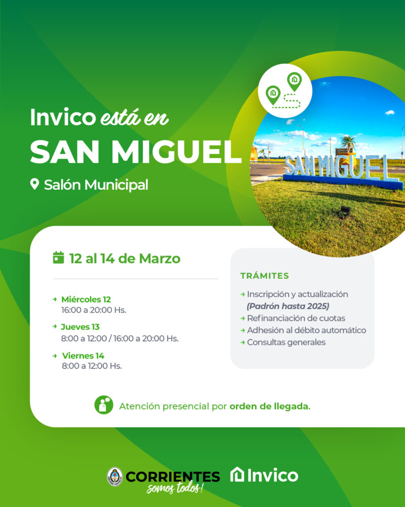 Personal del Instituto de Viviendas de Corrientes (Invico) visitará tres localidades del interior con el fin de facilitar tramites presenciales.