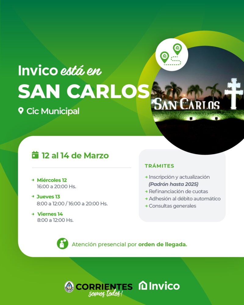 En San Carlos, estarán en el Cic Municipal; en San Miguel en el Salón Municipal. Los horarios en los dos lugares son: hoy de 16 a 20; mañana de 8 a 12 /16 a 20 y viernes de 8 a 12.