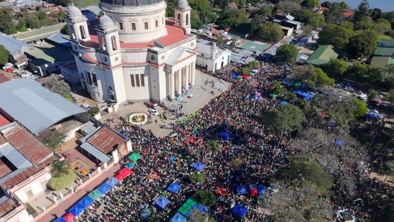 “Qué hermoso, qué lindo, caminamos ‘Yahá catú’ (que en guaraní significa «vamos ya, vamos todos juntos»), a Itatí. Y qué alegría encontrarnos aquí, cada uno vino con su mochila, sus cansancios, sus sueños, sus esperanzas. Todos venimos con algo en común, somos peregrinos y no cualquier peregrino, sino que somos peregrinos de esperanza guiados de la mano de la Virgen”, agregó monseñor Larregain, conectando la tradición con el compromiso de la juventud.
