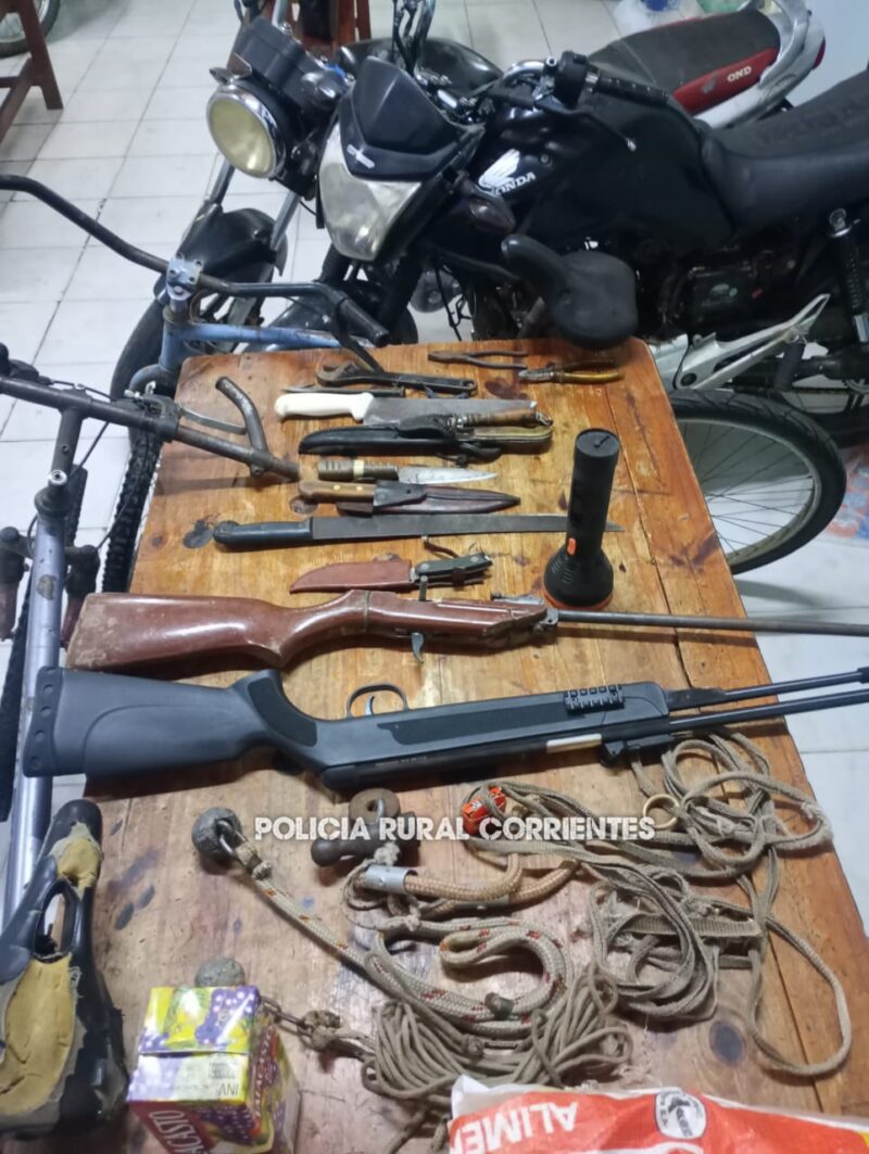 Como resultado de los procedimientos se secuestraron dos motocicletas, dos bicicletas, cuchillos, machete, pinzas, linterna, boleadoras, chuzas y dos rifles, uno calibre 22 y otro 5,5, entre otros elementos utilizados para la actividad ilegal. Además, fueron identificados y demorados siete hombres, cinco de los cuales quedaron alojados en la alcaidía de la Comisaría Tercera, algunos con antecedentes por abigeato.