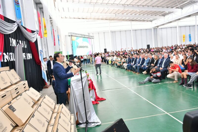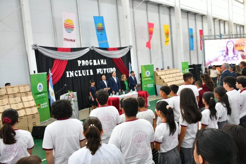 Ante un nutrido grupo de alumnos, padres, docentes y funcionarios del gobierno provincial y municipal, el gobernador Gustavo Valdés encabezó este jueves el acto realizado en Polideportivo de la localidad de Ituzaingó, donde unos 936 estudiantes de siete escuelas secundarias recibieron las computadoras otorgadas por la Provincia dentro del marco del programa Incluir Futuro.