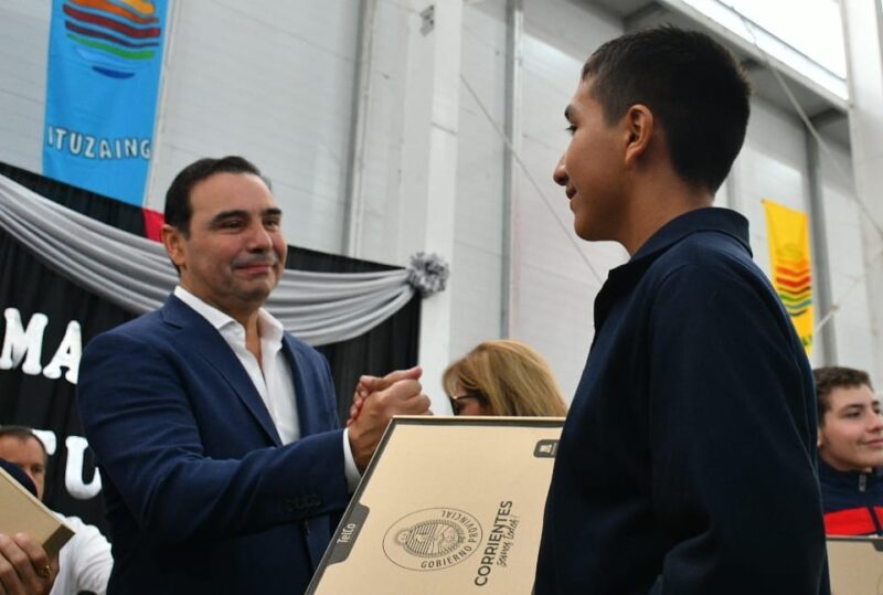 Con la entrega de casi mil dispositivos, Ituzaingó completó la matrícula de estudiantes secundarios con computadoras. El gobernador Gustavo Valdés encabezó ayer un nuevo acto de entrega de notebooks para alumnos de 1ro y 2do año de siete establecimientos de nivel secundario en Ituzaingó. Con ese aporte de la provincia, se alcanzó al 100% de los estudiantes secundarios de la localidad dentro del programa Incluir Futuro. “Alcanzamos un hito en la escuela pública correntina”, destacó el gobernador.