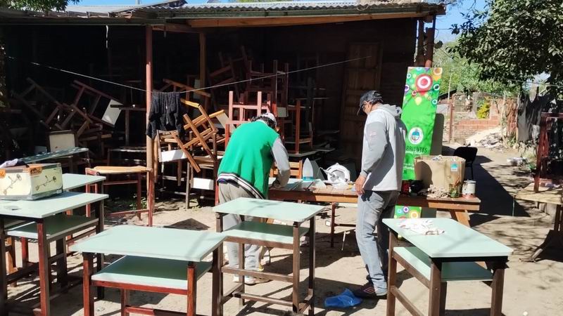 Se trata de una iniciativa, que comenzó hace un año como un curso de oficios y ahora se dedica a restaurar el mobiliario roto de las escuelas públicas, ofreciendo una solución económica y una fuente de capacitación e ingresos para sus integrantes.