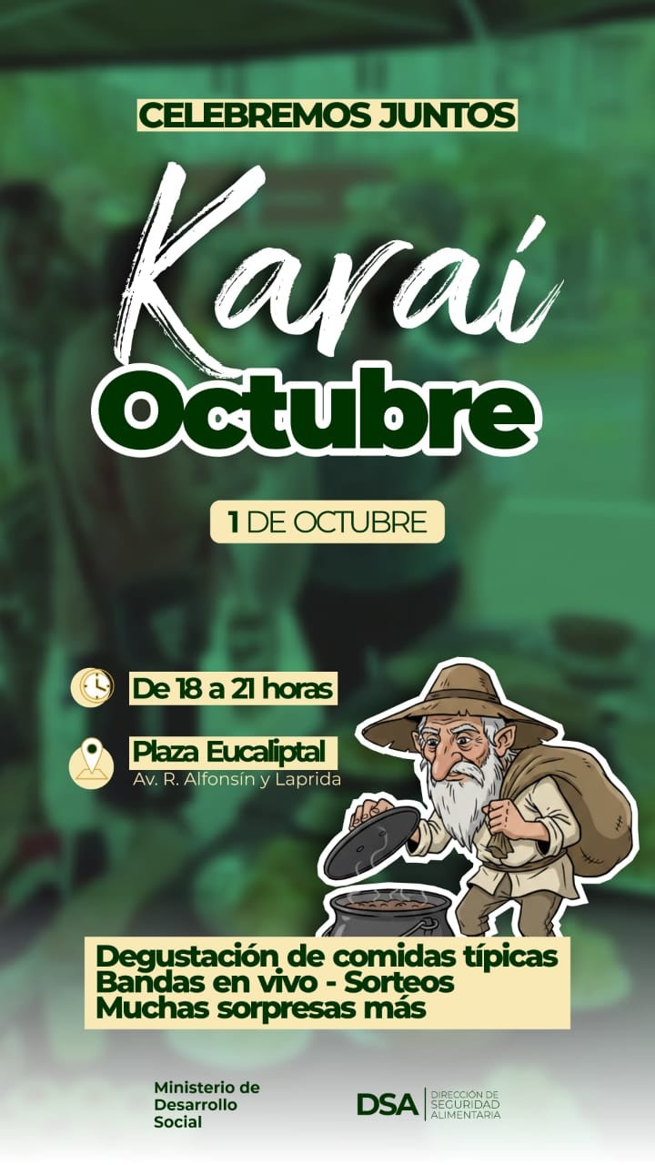 Por la tarde, desde el Ministerio de Desarrollo Social de la provincia, se realizara este miércoles, 1 de octubre, un evento en la Plaza de la Tradición (Eucaliptal) sito en av. Raul Alfonsin y Laprida para recordar al Karai de 18 a 21.