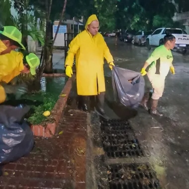 Frente al gran volumen de agua caída, cuadrillas municipales se desplegaron en distintos sectores de la capital provincial. Las tareas se centraron principalmente en la limpieza y desobstrucción de desagües y sumideros, con el objetivo de facilitar el escurrimiento del agua y normalizar el tránsito en las zonas más afectadas.