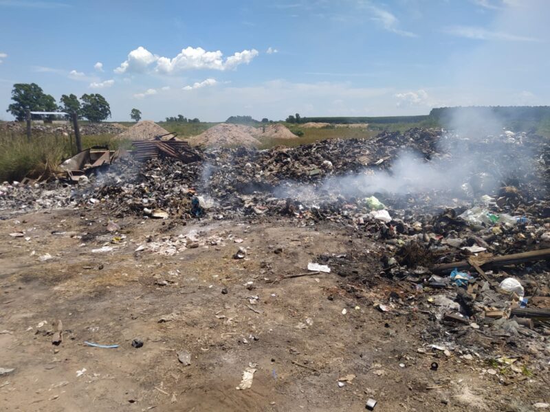 Son tantas las moscas que se ha multiplicado de manera exponencial las bicheras en la hacienda. Son tres los sectores del parque industrial que está a la vera de la ruta 14, muy cerca del pueblo, donde se deposita la basura.