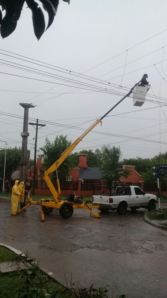 La localidad fuertemente golpeada por las intensas ráfagas de viento terminó con un gran saldo de postes caídos y conductores de Media y Baja Tensión cortados tanto en el casco urbano como en la zona rural. Actualmente se encuentra normalizada un 60% de la localidad. Las cuadrillas de la DPEC continúan trabajando para completar la normalización del servicio en el menor tiempo posible. Se está restableciendo paulatinamente el servicio eléctrico resguardando la seguridad de la población en su conjunto y de los operarios de esta Dirección que trabajan en el lugar.