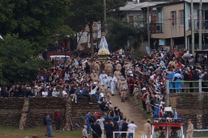 Posteriormente, se realizó una procesión hasta el santuario, donde el Arzobispo de Corrientes, Monseñor José Adolfo Larregain presidió la misa. Al finalizar la misma, la Virgen saludó a todos los peregrinos generando un momento de gran emoción frente a la Basílica.