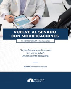 La iniciativa que busca establecer el arancelamiento hospitalario, conocida oficialmente como la “Ley de Recupero de Gastos del Servicio de Salud”, ha retornado a la Cámara de Senadores tras recibir la aprobación con modificaciones en la Cámara de Diputados. El proyecto, impulsado por varios senadores, busca optimizar la eficiencia del servicio de salud pública mediante un mecanismo de financiamiento complementario.