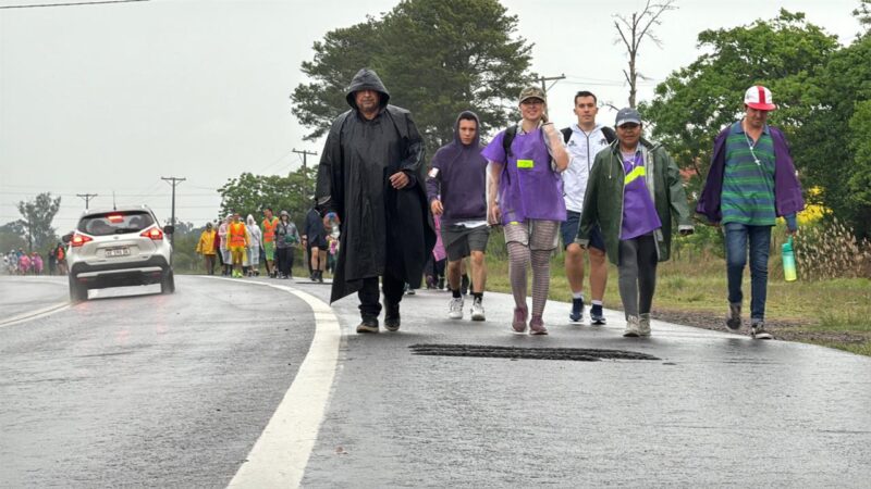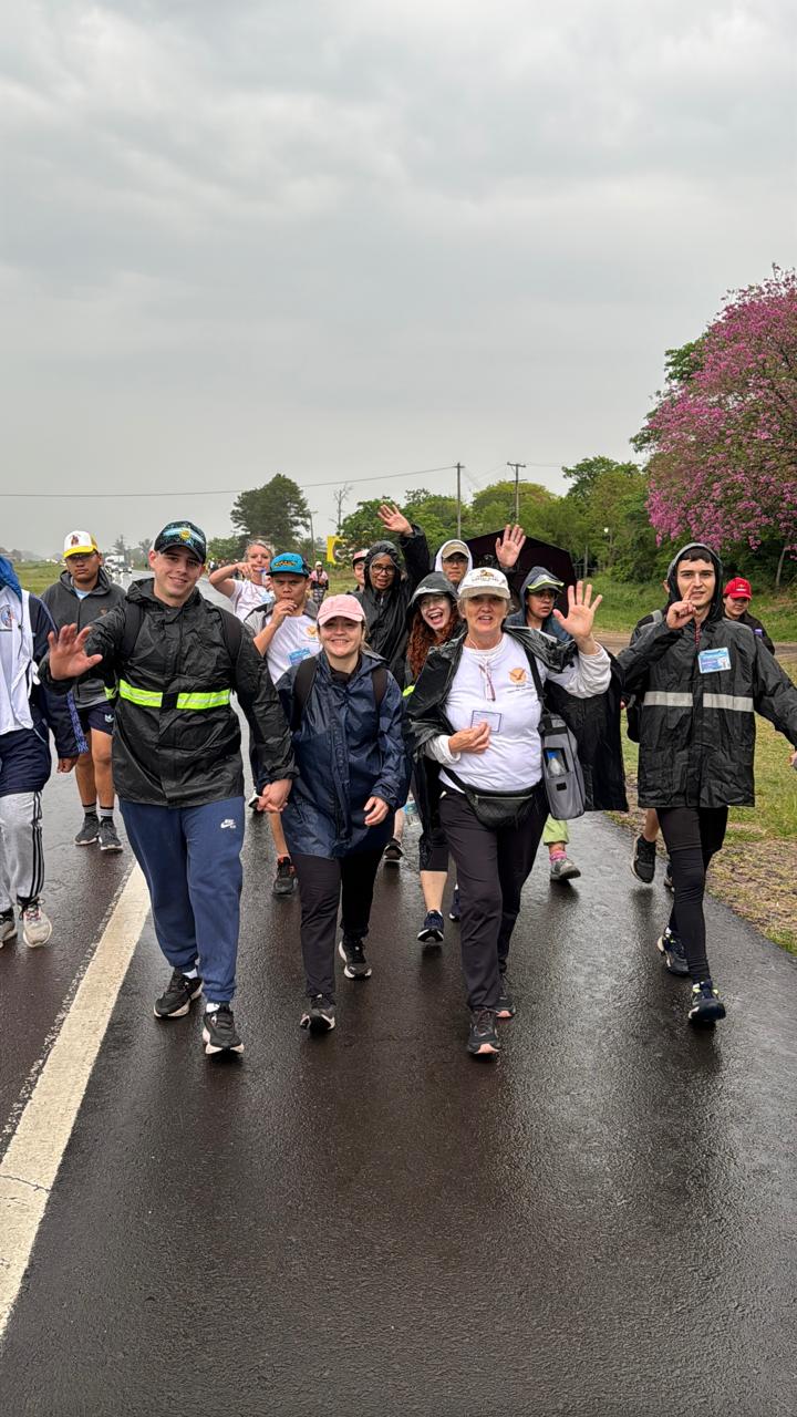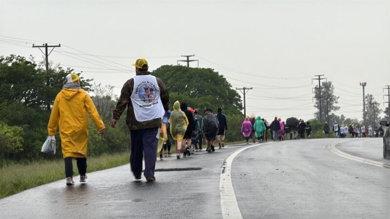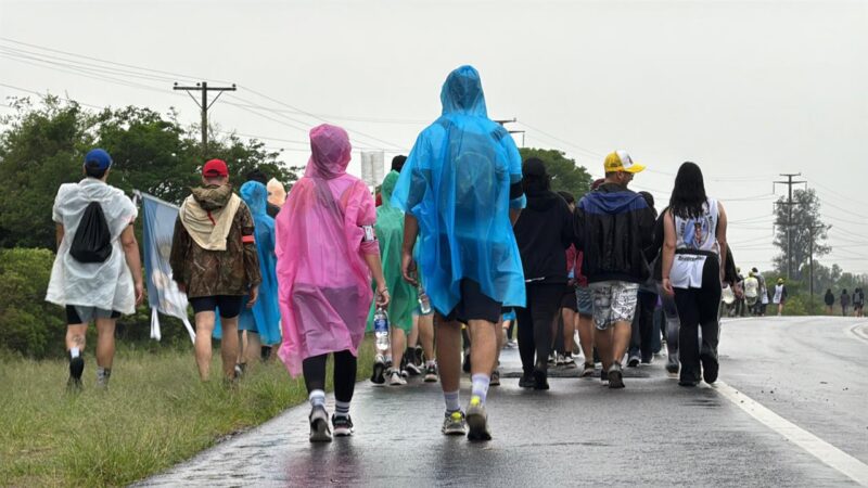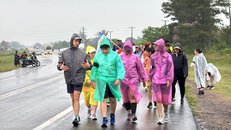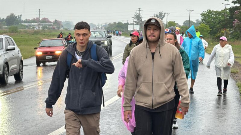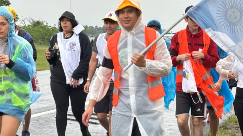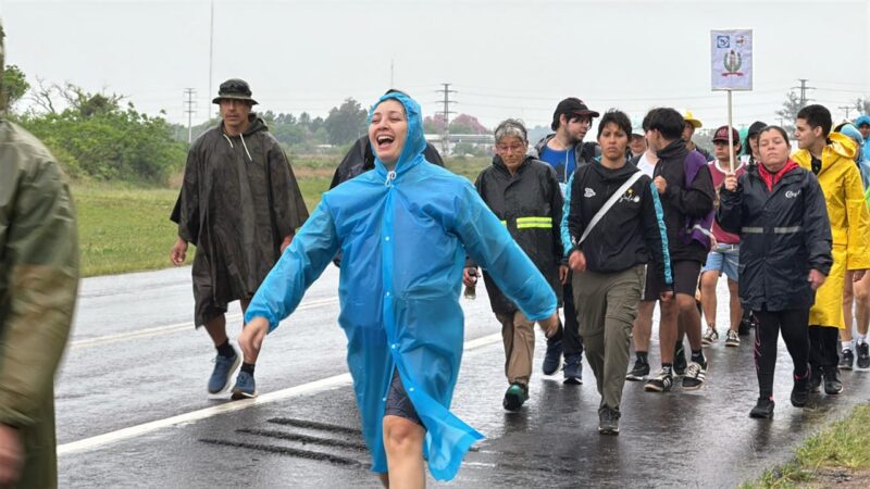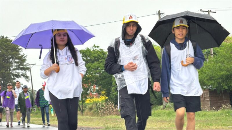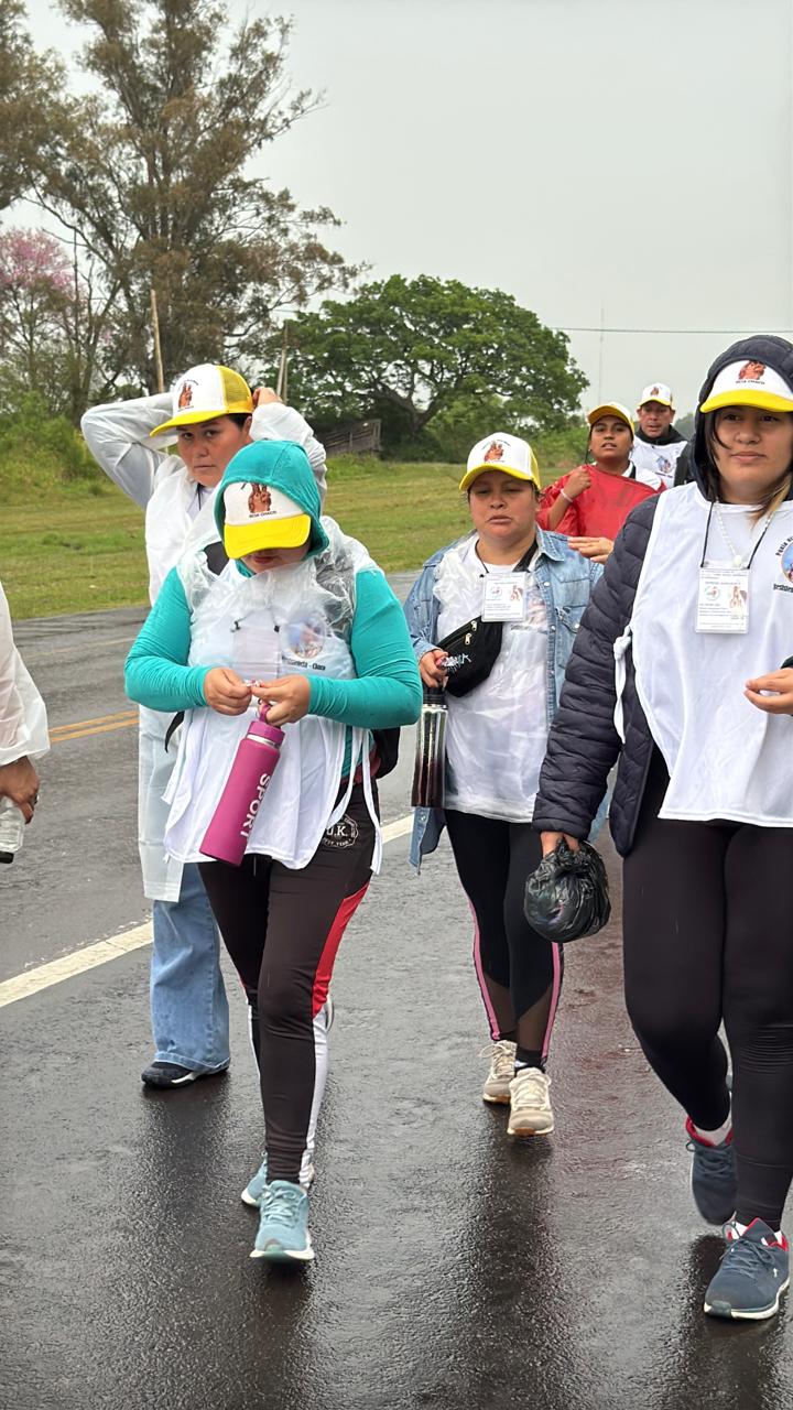 Pese a la lluvia y al pronóstico del tiempo, equipados con pilotos y paraguas, los peregrinos empezaron su marcha hacia la casa de mamá María.