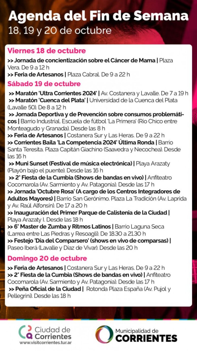 La Municipalidad de Corrientes programó propuestas como jornadas de concientización, maratones solidarias y saludables, ferias, eventos musicales. Son las siguientes: