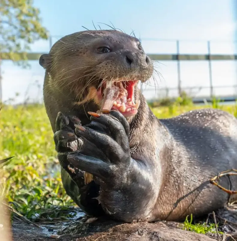 La nutria gigante (Pteronura brasiliensis) es el mamífero acuático más grande de Sudamérica, puede alcanzar hasta 1,80 metros de largo y pesa más de 30 kilos. Su presencia es clave para mantener el equilibrio de los humedales, ya que su dieta se basa principalmente en peces.