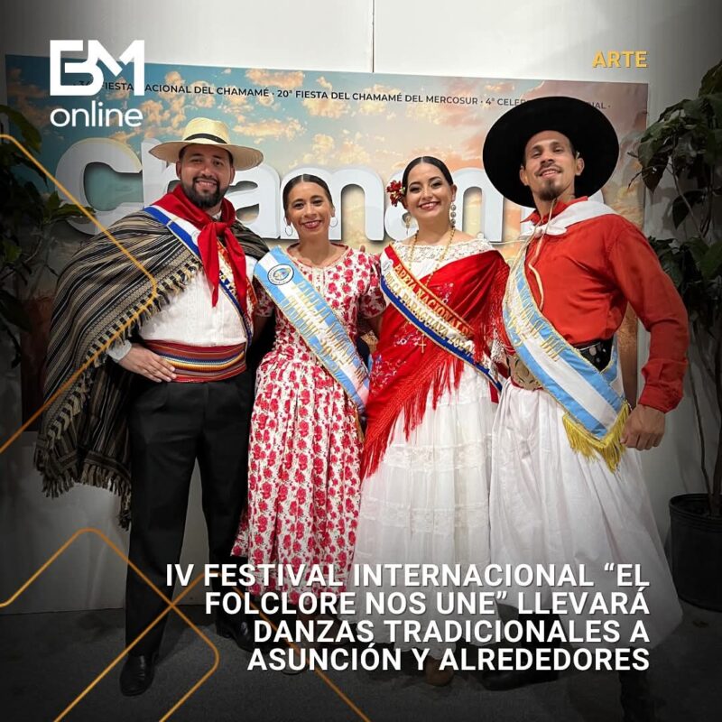 Con el auspicio del Instituto de Cultura, la Pareja Nacional del Chamamé 2025, conformada por Erika y Marcelo Aguirre, viajó a Paraguay para representar a Corrientes y Argentina en el 4° Festival Internacional «El Folclore nos une», a celebrarse desde este viernes 28 de febrero al 2 de marzo en la ciudad de Asunción y en los municipios cercanos. Esta actividad en el vecino país se enmarca en las acciones camino a la 35ª Fiesta Nacional del Chamamé.
