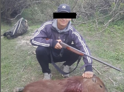 Según el informe, el operativo lo hicieron en la localidad de Mocoretá, de donde es oriundo el joven. “Los distintos trabajos de investigación se iniciaron luego de tomar conocimiento por parte de redes sociales, donde un joven, presunto cazador, mostraba una imagen con animal –carpincho-, al cual habría dado caza”, detallaron.