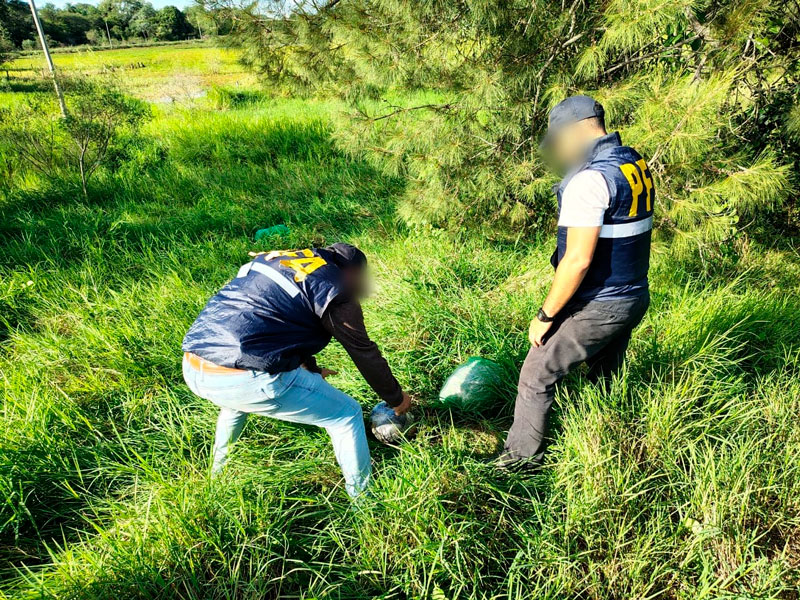 Como resultado de las tareas de rastrillaje, los investigadores hallaron 20 paquetes ocultos entre la vegetación. Con la correspondiente autorización judicial, se procedió a su apertura, constatando que contenían más de cincuenta y dos kilogramos de marihuana acondicionados para su comercialización.