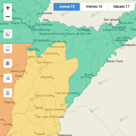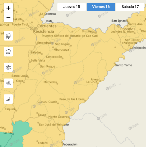 El Servicio Meteorológico Nacional (SMN) mantiene activa la alerta amarilla por tormentas para este jueves en el centro-sur provincial, pero el dato que mantiene en vilo a los correntinos es la extensión de este fenómeno a todo el territorio durante el viernes. Justamente mañana está prevista la apertura de la 35º Fiesta Nacional del Chamamé, 21ª Fiesta del Mercosur y 5ª Celebración Mundial en el mítico anfiteatro “Mario del Tránsito Cocomarola”.