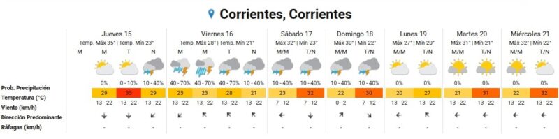 Para hoy, el SMN prevé una jornada agobiante con una máxima de 35 grados en la Capital, vientos rotando del Norte al Noreste y una probabilidad creciente de tormentas hacia la tarde o noche. Sin embargo, el viernes el termómetro dará un respiro —marcando una mínima de 21 y una máxima de 28 grados—, aunque la inestabilidad será la gran invitada.