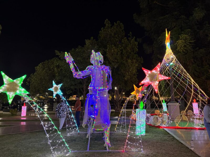 En la Punta San Sebastián se elaboró un diseño que conjuga la Navidad y la identidad correntina: luminarias, una pareja de chamamé junto a un árbol de Navidad que se encuentra a disposición de vecinos y turistas que lo quieran visitar.