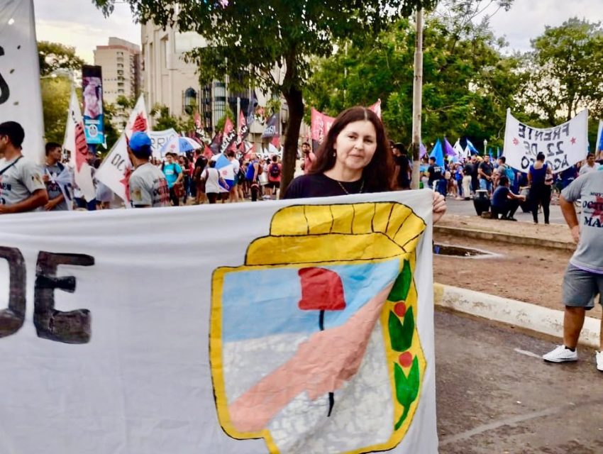 -Muy buenos días, buenos días a la audiencia. Soy docente, justamente ayer cumplí 25 años de antigüedad en la docencia correntina, soy sindicalista, pertenezco a Suteco, el Sindicato Único de Trabajadores de la Educación de Corrientes que, como ustedes saben, es el más combativo. Con el que vengo desarrollando una militancia en la calle, tratando de reivindicar los derechos de los trabajadores en la educación y asimismo también de otros ámbitos laborales, ya que creo, considero y estoy convencida que, la lucha debe ser multisectorial ante un gigante como lo es en Corrientes el Gobierno de ECO + Cambiemos, con un 77 por ciento de los votos que les ha otorgado la suma del poder político. Si bien ya ejercían, hoy con votos, lamentablemente, se le ha otorgado la suma del poder político, absoluto. También me dedico a la investigación, es un viejo amor al que he vuelto en estos días y un poco me decidió a retomar este amor que tengo y por escribir la pronta partida de Fabián Ríos (de quien fue su pareja por muchos años). Al mes de su desaparición inicié esta investigación a través de entrevistas, de testimonios orales, de compañeros de militancia, en estos cuarenta años de militancia en Corrientes. Peculiarmente, referido a nuestro querido Partido Justicialista, entonces, me parece importantísimo aprender de todas las generaciones que lucharon por reconstruir nuestro partido para ese periodo infame, oscuro, de la dictadura militar en la Argentina, que también pegó y muy duro en Corrientes. También te cuento que soy hermana de un veterano de Malvinas, un héroe de Malvinas, y desde ya vaya mi saludo a todos los héroes vivos y familiares de los que quedaron de centinelas de nuestras tierras de Malvinas.