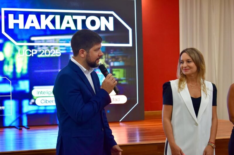 La jornada presencial inició con la acreditación y charla inspiracional sobre el futuro de la inteligencia artificial a cargo del egresado UCP y Lic. en Publicidad, Rafael Costa “Ragaco”. Los equipos multidisciplinarios participaron del desafío central: crear campañas de comunicación en ciberseguridad utilizando herramientas de IA generativa, integrando enfoques técnicos, comunicacionales y legales.