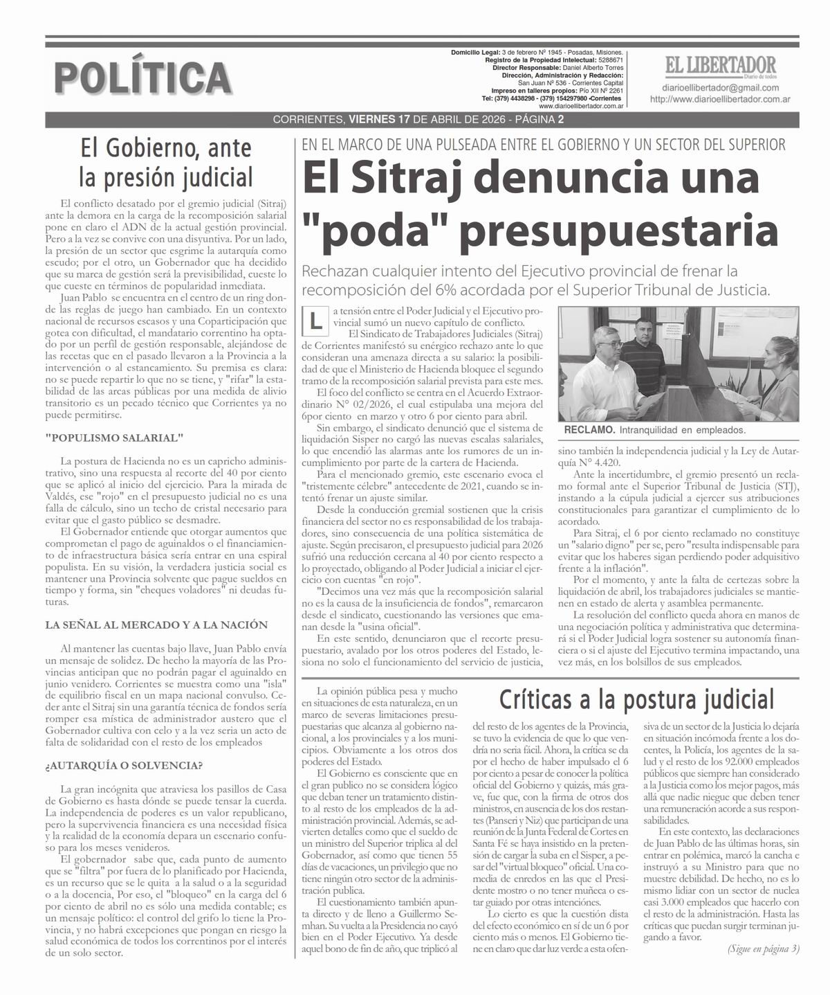 Al mantener las cuentas bajo llave, Juan Pablo envía un mensaje de solidez. De hecho la mayoría de las Provincias anticipan que no podrán pagar el aguinaldo en junio venidero. Corrientes se muestra como una «isla» de equilibrio fiscal en un mapa nacional convulso. Ceder ante el Sitraj sin una garantía técnica de fondos sería romper esa mística de administrador austero que el Gobernador cultiva con celo y a la vez seria un acto de falta de solidaridad con el resto de los empleados