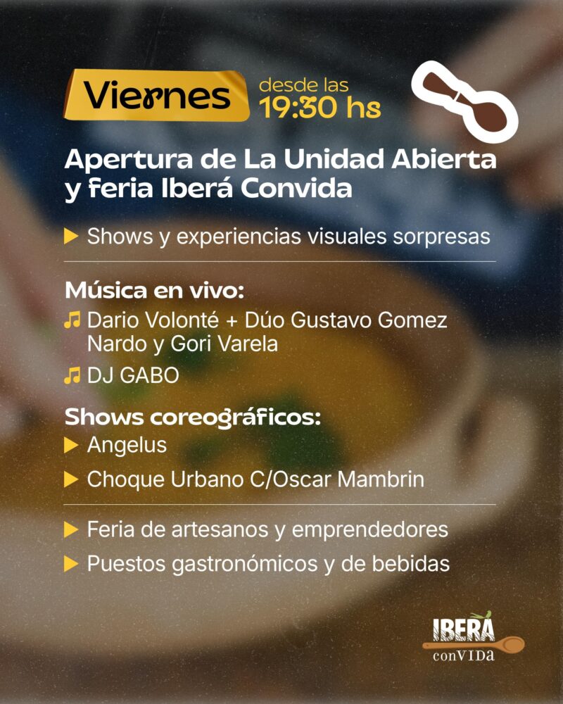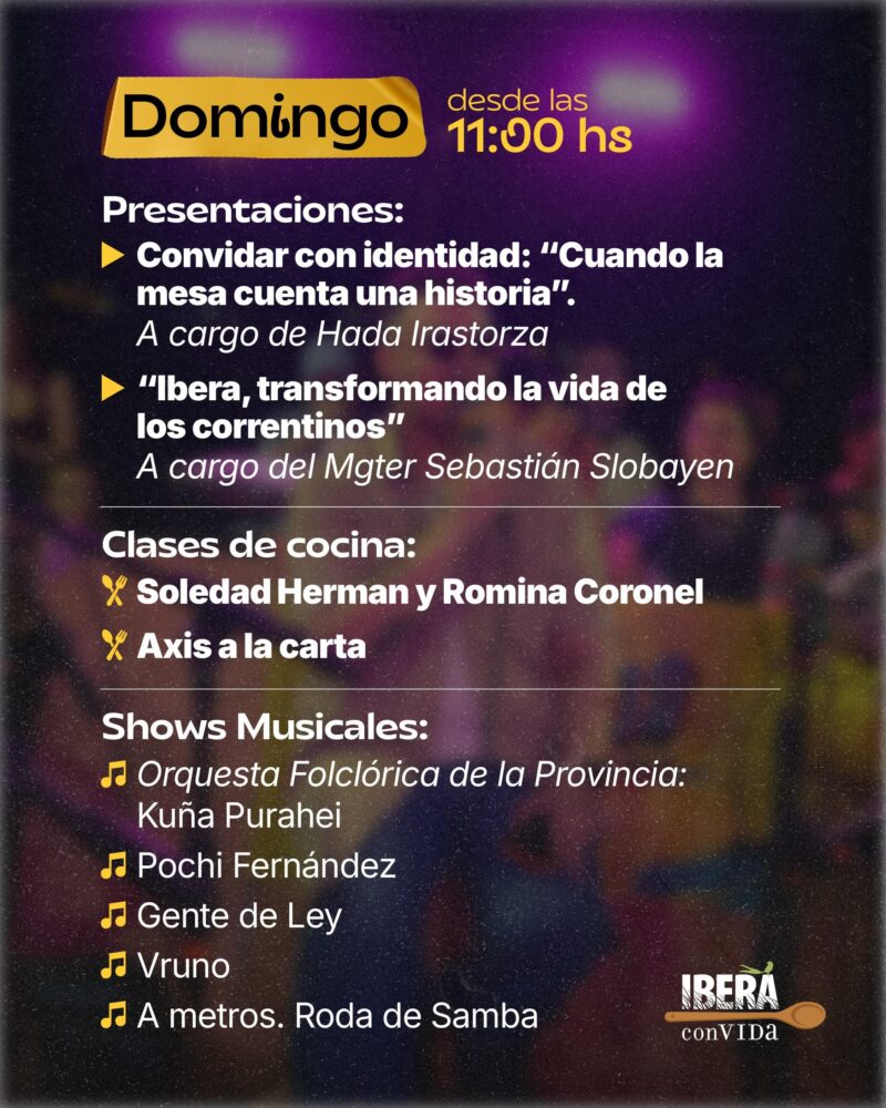 Se trata de Iberá Convida, donde los cocineros de cada portal del Iberá junto a los artesanos más representativos de las distintas localidades y otros invitados, mostrarán la esencia de la identidad correntina en sus platos y creaciones. Experiencias musicales y tecnológicas complementan la oferta durante sábado y domingo, con una gran apertura prevista para el viernes por la tarde que promete “sorprender” y “hacer brillar” el lugar y la propuesta.