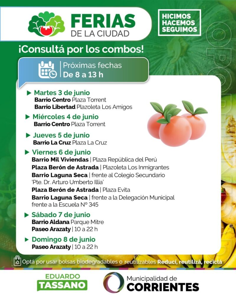 A través de las Ferias de la Ciudad, la Municipalidad de Corrientes inicia un nuevo mes de recorrida, acercando productos de calidad, con interesantes ofertas y combos, a diferentes espacios públicos de los barrios.